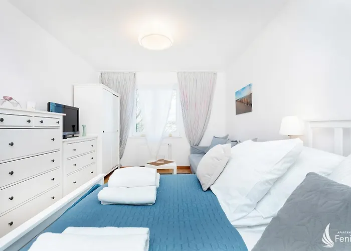 Feniks Apartamenty ferielejlighed i Kołobrzeg byder på en sæsonåben udendørs pool, en have og en udendørs pool. Denne lejlighed ligger inden for 7 km fra Den Polske Hærs Museum, mens Market Wojskowy ligger 4 km væk.